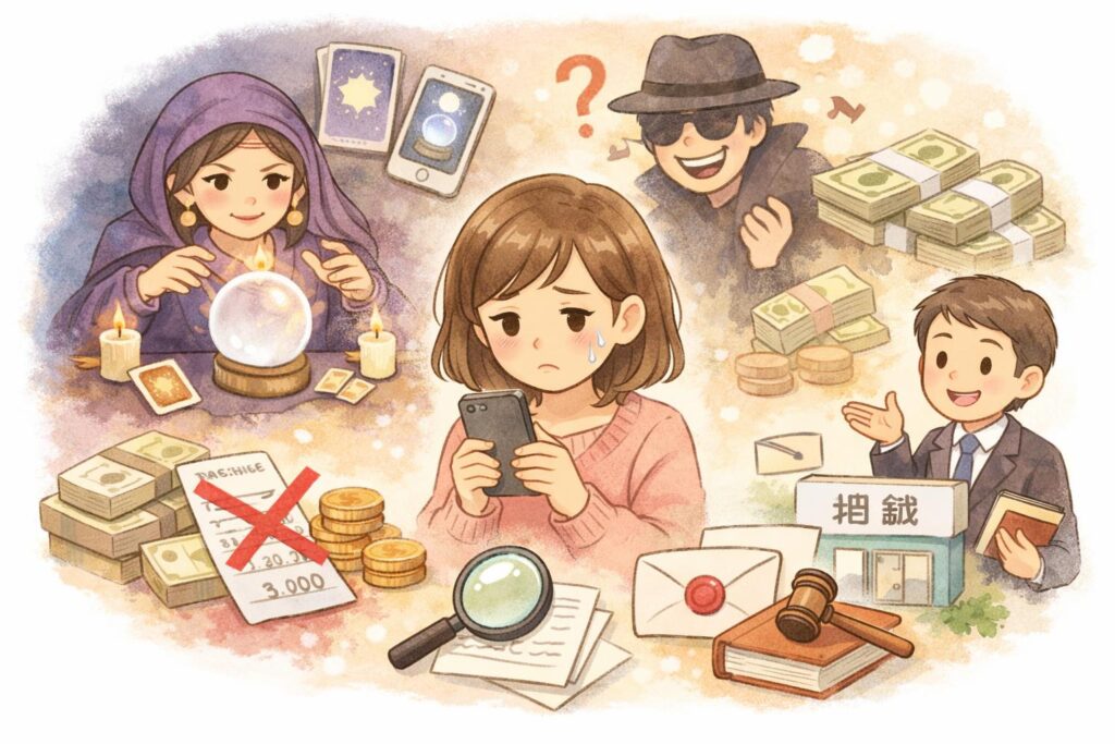 占いサイトやアプリで高額な課金をしてしまった、対面鑑定で不当な請求をされたなど、「もしかして占い詐欺?」と不安や焦りを感じていませんか。結論から言うと、占い...